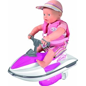 Hab viel Spaß, ob an Land oder im Wasser, mit "My little Baby Born Puppe & Jet Ski". Die Puppe kommt mit Badeanzug, Schwimmweste und Sonnenvisier. Ihr Jet Ski ist bunt und sieht sehr funky aus. Er ist batteriebetrieben und fährt durch Wasser. Die Puppe kann auch einfach zum Spielen benutzt werden. Niemals hat spielen so viel Spaß gemacht!